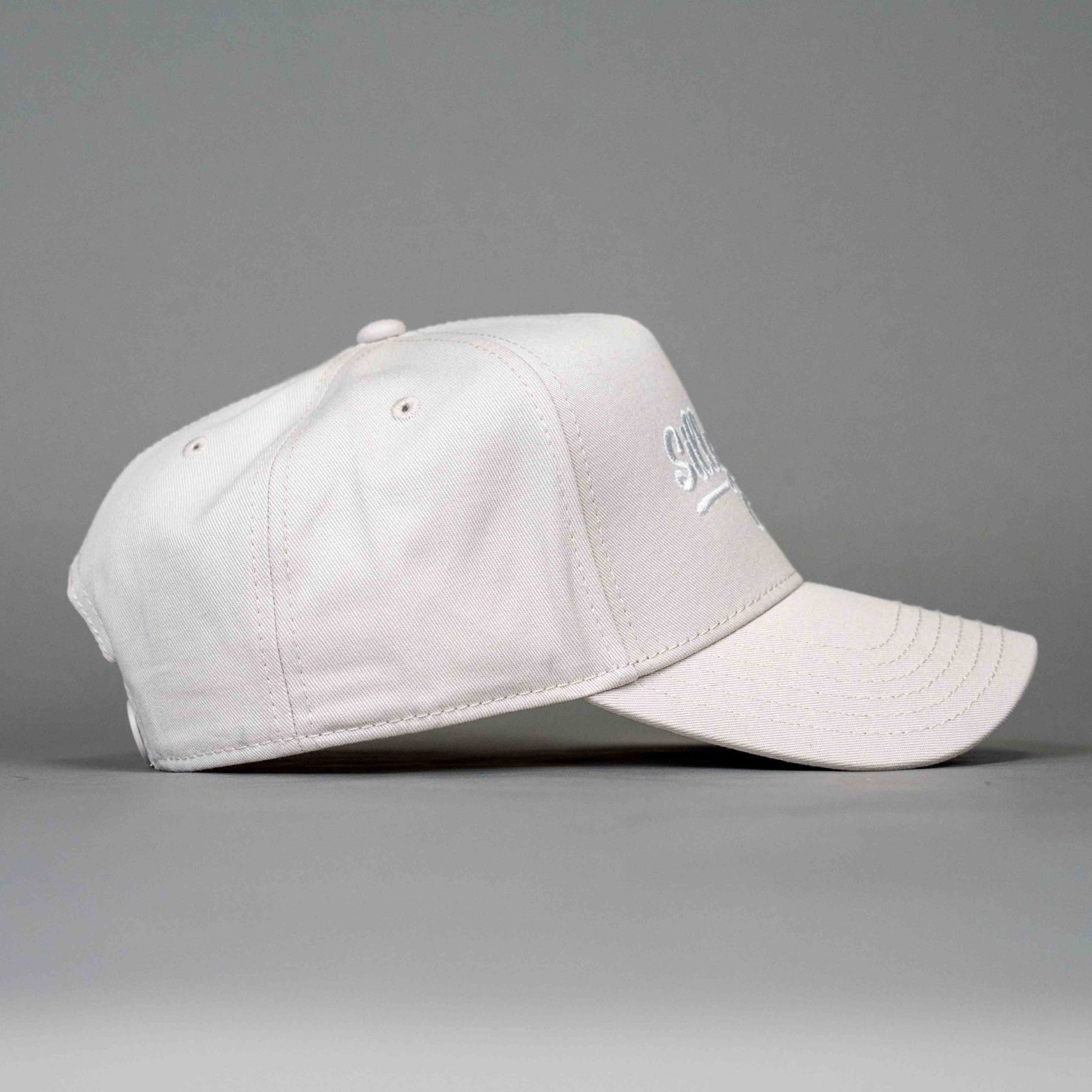 The classic fit, leveled up. This premium 5-panel cap features the bold Silly Pump Crew logo in crisp white embroidery. Designed with a structured mid-profile fit and adjustable snapback, it’s available in Black or Bone, both finished with clean white stitching for a sharp, versatile look.